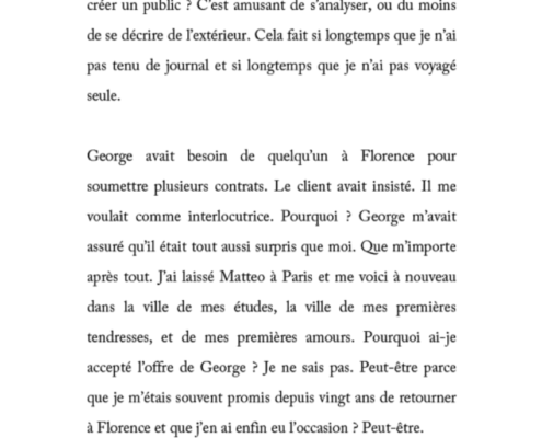 Voici trois nouvelles écrites à différentes époques de son parcours et réunies en un volume : FRANCESCA, un conte inquiétant sur les rives de l’Arno, MANON, une passion amoureuse à l’ombre des églises du vieux Bruxelles et MYRRHA, un récit poétique initiatique.